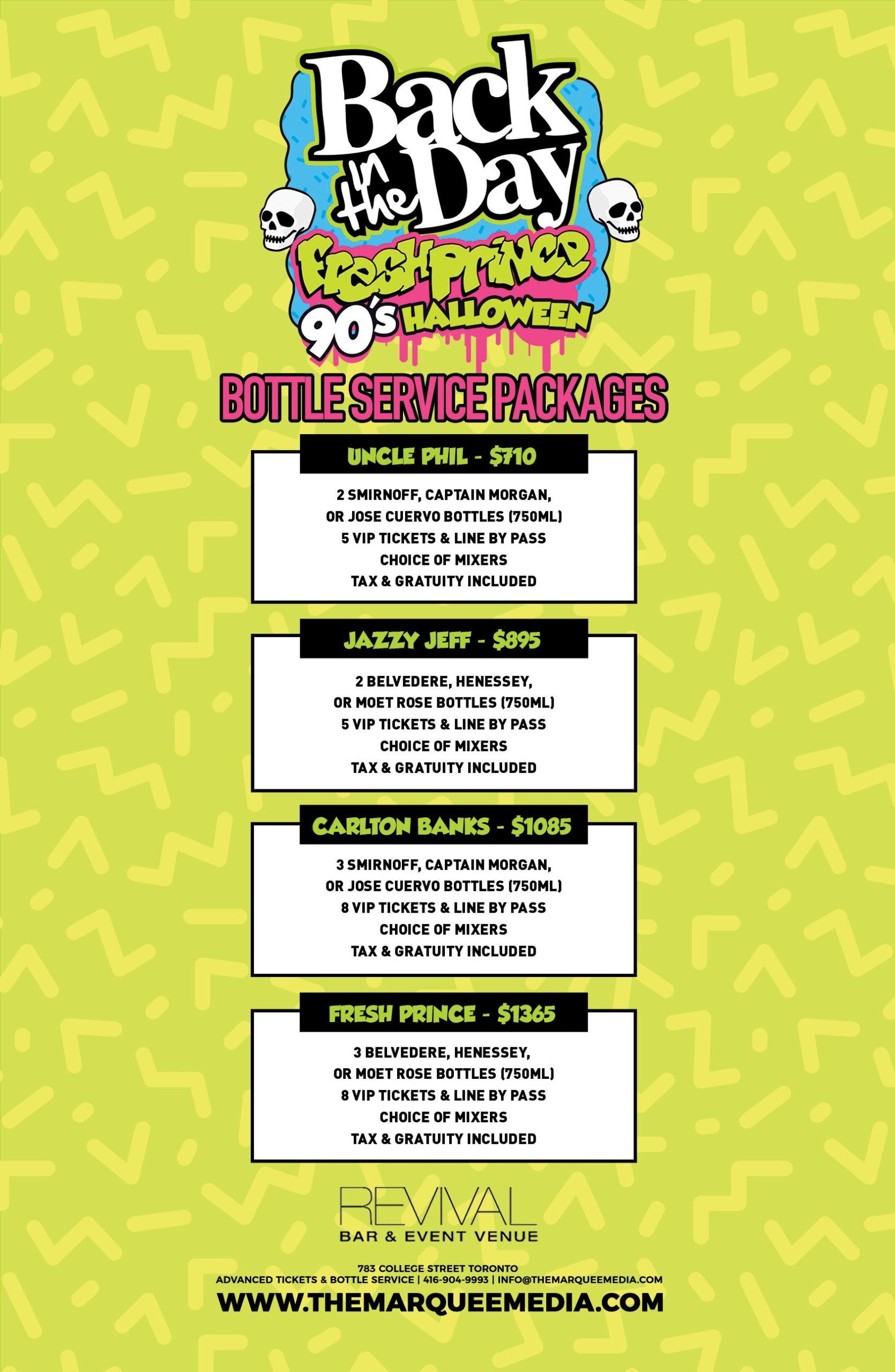 It’s been a long time, we shouldn’t have left you, without a dope beat to step to. We’re finally back! The 11th annual Back In The Day “Fresh Prince 90’s Halloween” inside Revival on Friday October 29th, 2021! A tribute to old school Hip Hop, R&B, Dance, House, Reggae, and Pop from the 90’s! Music by DJ R2 and DJ C-Lo plus Fresh Prince Halloween décor and nostalgic 90’s candies and treats! Rated Toronto’s best old school Halloween jam by BlogTO and sold out 10 years in a row!