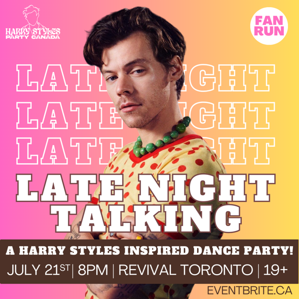 TASTES LIKE STRAWBERRIES, ON A SUMMER EVENINโโฆ ๐๐ Weโre throwing another Harry Styles inspired dance party and youโre invited! Get ready to dance and sing along to all of your favorite Harry Styles/One Direction songs all night long at our โLate Night Talkingโ Party! ๐บโจ Run by fans, for fans! ๐